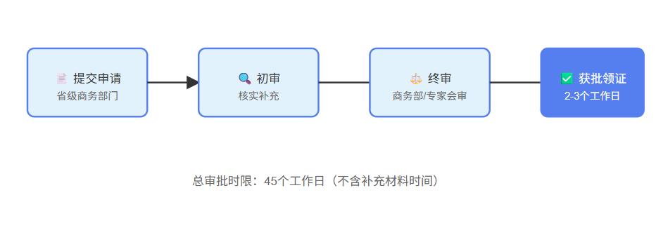4. 获批后至省级商务部门领取纸质许可证(2-3个工作日)
