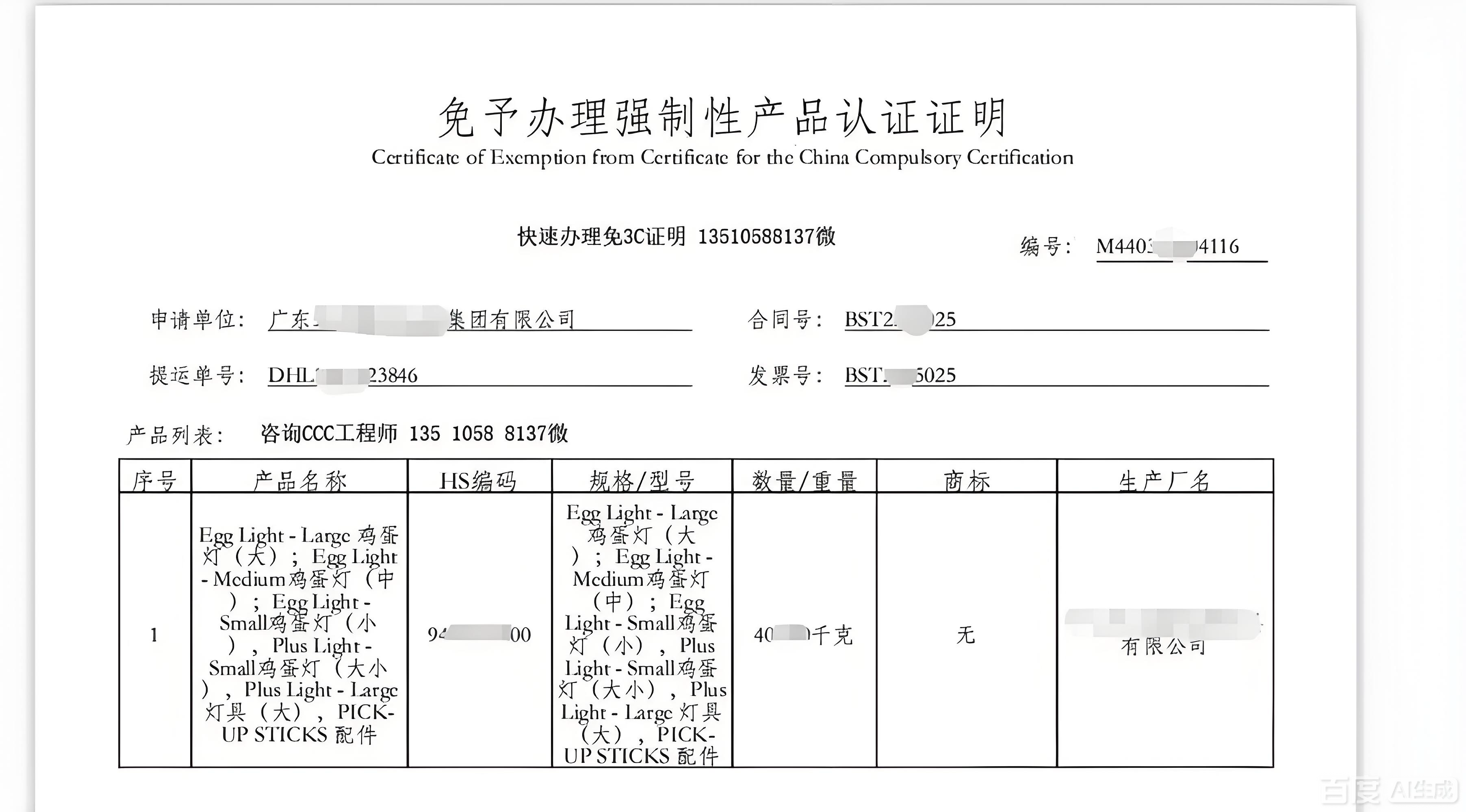 - 《免办 3C 认证货物用途承诺书》(核心材料):需明确承诺 “本次进口货物仅用于生产线配套 / 维护,不单独销售、不流向民用市场,且在使用后不转让、不挪作他用”,加盖企业公章;